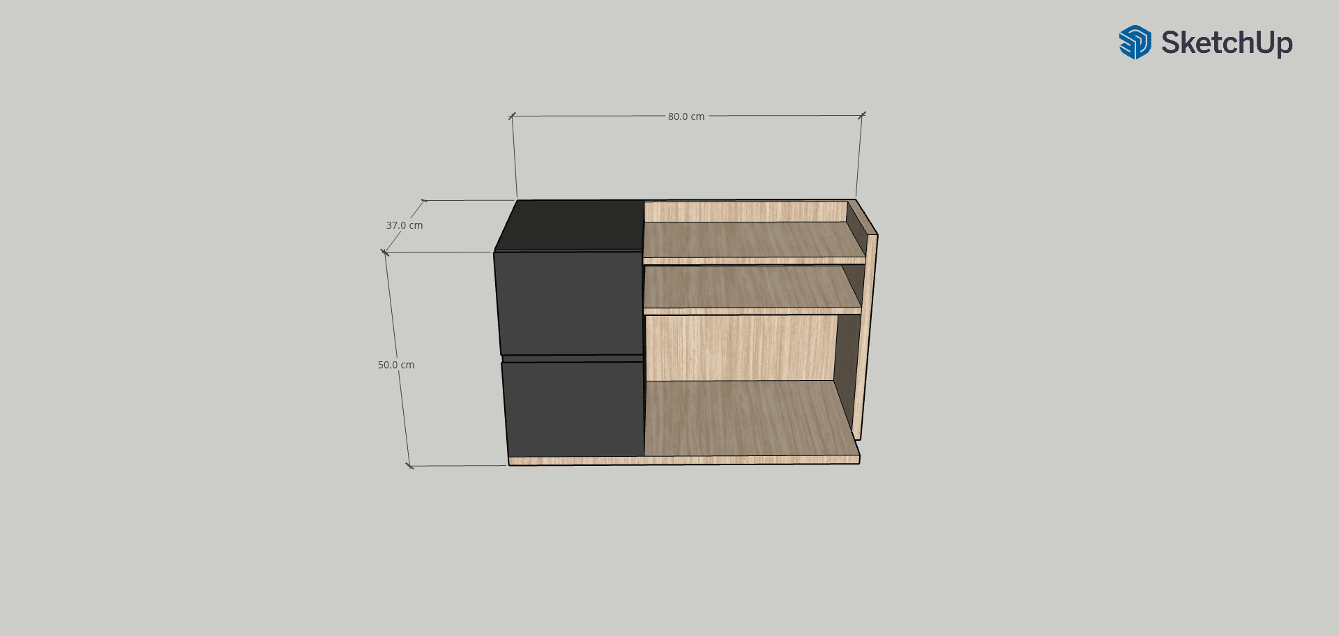 שידת לילה עשויה מעץ מלא תלת שכבתי עם עם שתי מגירות לאחסון במנגנון פתיחה טריקה שקטה.
